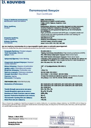Твърда тръба GEODRAIN PLUS – Сертификат за изпитване