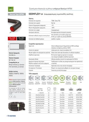Гъвкавата тръба GEONFLEX N750 беше създадена през 2011 г. и представена на Панаира за осветление и строителни технологии във Франкфурт, Германия, през 2012 г. Тя е част от групата тръби с двойна стена и е една от най-важните инвестиции на KOUVIDIS в областта на разполагането и защитата на кабели в заровени в земята мрежи. Високото й качество и механична якост, която е максималната по EN 61386-24, я правят уникална на европейския пазар. През 2017 г. компанията пусна на пазара 2-рото поколение GEONFLEX N750 с цветова маркировка, която използва различен цвят според областта на приложение (електрически инсталации или комуникационни системи), с което подобри не само продукта, но и улесни работата на електротехниците.