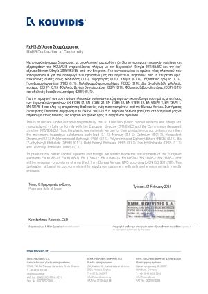 | Защита от проникване | IP44 (при свързано съединение) IP 68 (Съединение, прикрепено с херметизиращ материал KOUVIDIS) |