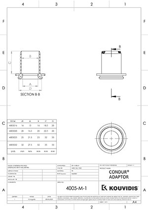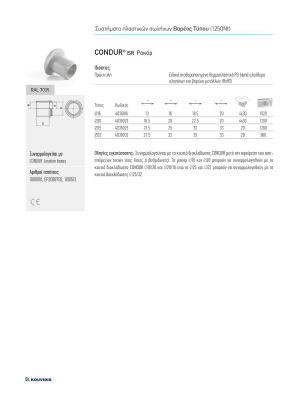 Адаптерът CONDUR е проектиран за поставяне към разпределителни кутии CONDUR след премахване на тапите или уплътнителните им мембрани с цел безопасното им присъединяване към твърди и гъвкави тръби на KOUVIDIS. То е част от системите от тръби CONDUR – CONFLEX, MEDISOL – MEDIFLEX, SILCOR – SIFLEX, CONDUR HF – CONFLEX HF и MEDISOL PLUS– MEDIFLEX PLUS за разполагане и защита на кабели.