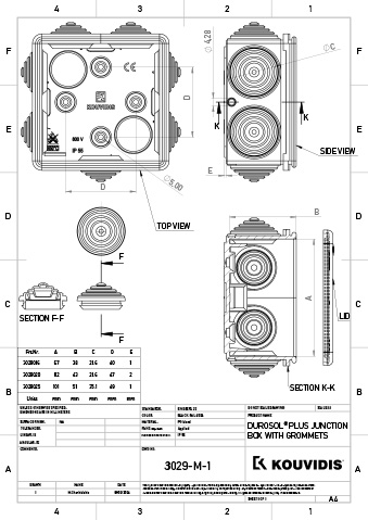 Разпределителна кутия DUROSOL PLUS ISR с уплътнителни мембрани – Списък с технически данни