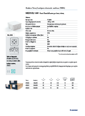 Разпределителна кутия MEDISOL AM с антимикробна технология – Списък с технически данни