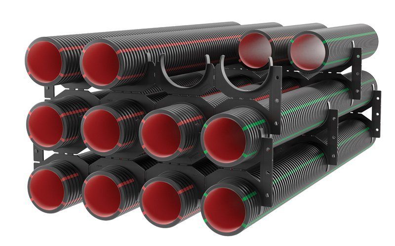 The spacers create a straight and stable routing that facilitates the passage of cables inside the conduits. They also ensures the constant and uniform filling of the installation trench, especially at the areas between and around the conduits.
